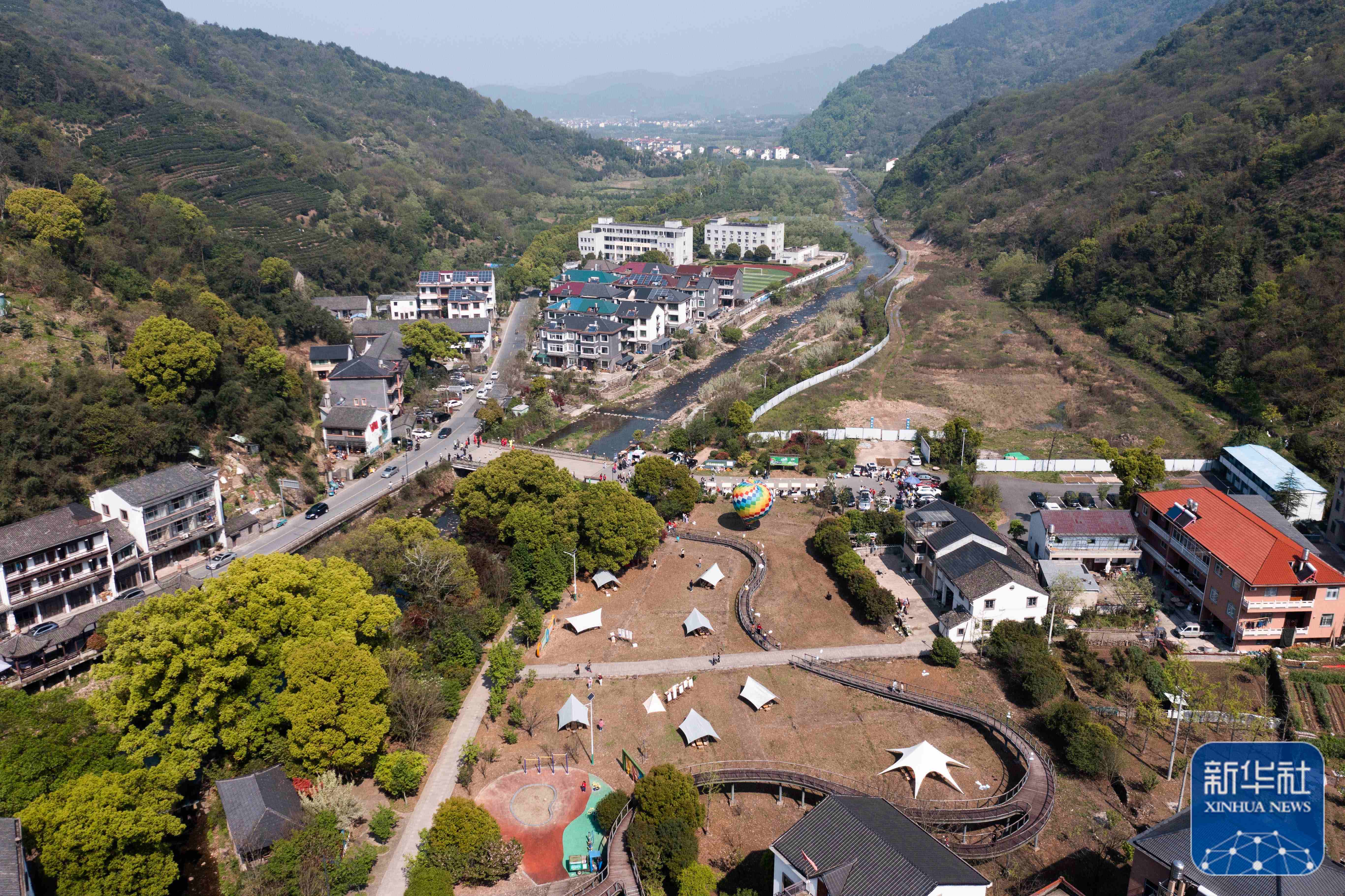 ↑这是4月8日拍摄的浙江省诸暨市赵家镇东溪村(无人机照片)。