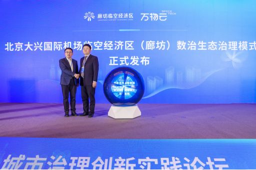 4月7日,在城市治理创新实践论坛暨中国城市科学研究会城市治理专业委员会年会在武汉召开。会上,临空经济区(廊坊)党工委委员、河北临空集团有限公司党委书记、董事长韩金虎联合万物云城总经理唐志共同发布北京大兴国际机场临空经济区(廊坊)(以下简称:廊坊临空经济区)“数治生态”治理模式。韩金虎表示,目前“数治城市”已经成为廊坊临空经济区的重要城市标签。