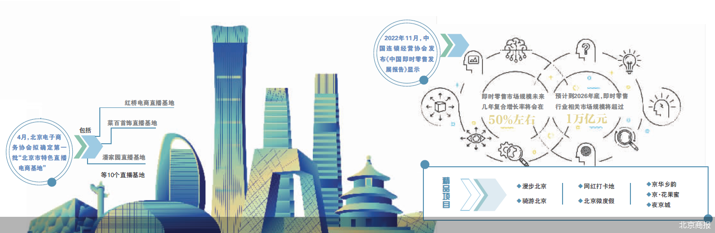值得关注的是,北京鼓励企业积极开展网络促销、直播带货主题活动,推动建立一批直播电商总部与结算中心。今年4月,北京电子商务协会公布了关于2023年度第一批“北京市特色直播电商基地”名单公示的公告,经企业自愿申报,协会组织评定,拟确定第一批“北京市特色直播电商基地”,包括红桥电商直播基地、菜百首饰直播基地、潘家园直播基地等10个直播基地。