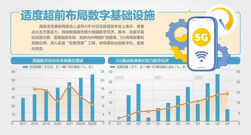 比如,2022年底出台的《中共中央 国务院关于构建数据基础制度更好发挥数据要素作用的意见》(即“数据二十条”)以及2023年2月印发的《数字中国建设整体布局规划》等文件,都强调要加快数字经济的发展。