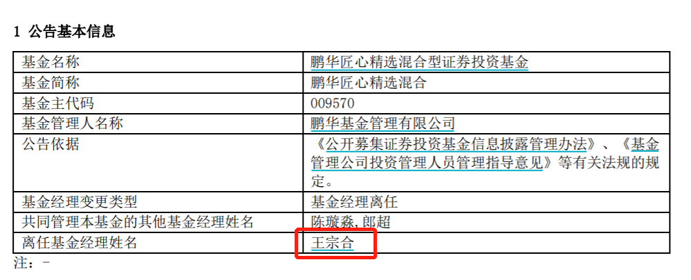 财联社4月22日讯(编辑 零彧)公募一季报披露期即将落下帷幕之际,年内明星基金更换基金经理的脚步又进一步。曾经的主动权益类公募基金首募规模纪录创造者王宗合,因“公司工作安排”原因离任鹏华匠心精选,而至此他也已正式卸任所有在管产品。