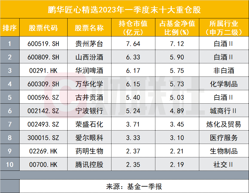 来源:鹏华匠心精选一季报
