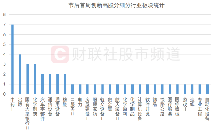注:节后首周创新高股分细分行业板块统计