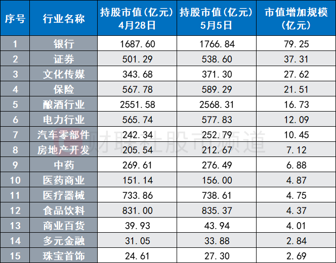 注:北向资金节后持股市值增长居前的板块(截至5月5日收盘)