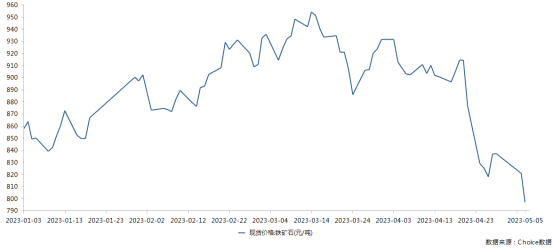 随着铁水产量开始下降,铁矿石价格二季度开始大幅下跌,目前日照港(600017)PB粉价格跌破800元/吨,铁矿石期货主力合约i2309价格也跌破700元/吨。