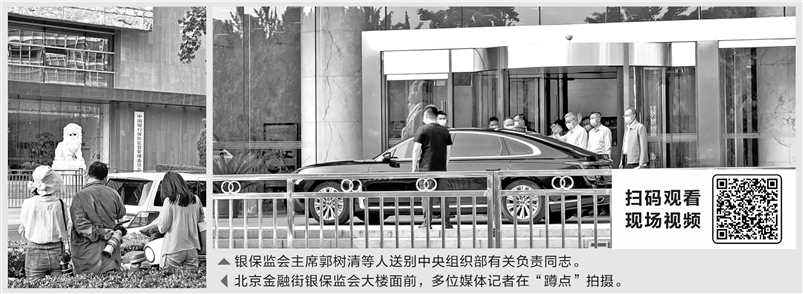证券时报记者当天下午来到位于北京金融街(000402)的银保监会大楼面前,现场有多家媒体在“蹲点”拍摄。14时30分许,银保监会一行人来到大门口迎接,14时40分左右,一辆考斯特、一辆红旗车驶进银保监会大门口,多人匆匆下车后进入银保监会大楼。