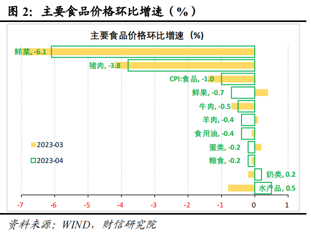 一、需求偏弱和食品高基数共致CPI同比涨幅回落,但服务需求继续恢复。食品方面,受供给季节性增加、需求整体偏弱等因素影响,猪肉、鲜菜、鲜果等主要食品价格环比均下跌,加之去年同期基数偏高,食品价格同比涨幅回落2个百分点,贡献了本月CPI同比增速降幅的2/3左右。非食品方面,受油价和大宗消费拖累增强影响,非食品价格同比增速较上月回落0.2个百分点,但服务业需求继续恢复,核心CPI低位走平,预计未来服务业修复将支撑核心CPI企稳回升。