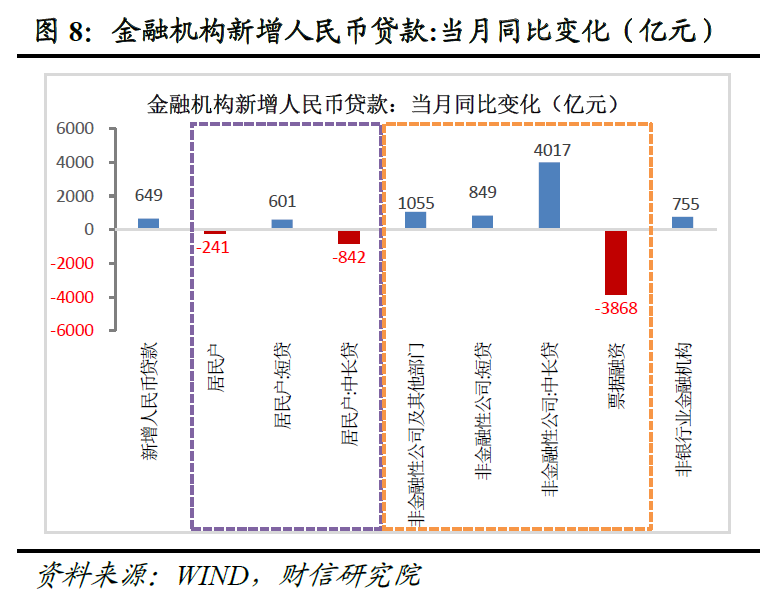 二、信贷不及预期主因居民融资转负,企业中长贷延续高增