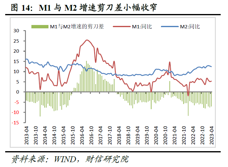 三、基数抬升、存款利率下调等拖累M2增速回落,服务业现金流改善支撑M1增速回升