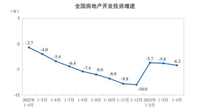 中新经纬5月16日电 据国家统计局网站消息,1—4月份,全国房地产开发投资35514亿元,同比下降6.2%(按可比口径计算);其中,住宅投资27072亿元,下降4.9%。