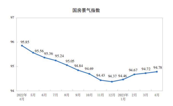 4月份,房地产开发景气指数(简称“国房景气指数”)为94.78。