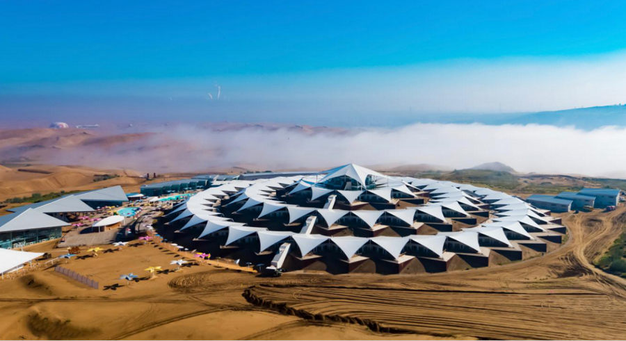 【越野e族旅游区—月亮湖沙漠生态旅游区—广宗寺(南寺)/福音寺(北寺)—通湖草原旅游区】:沿途体验骆驼文化,品尝烤全羊非遗美食,在“阿拉善礼物”旗舰店选购特色非遗及文创产品,感受《神游通湖》大型露天篝火演艺表演,欣赏和硕特民歌、呼麦、马头琴音乐及沙力搏尔式摔跤表演。