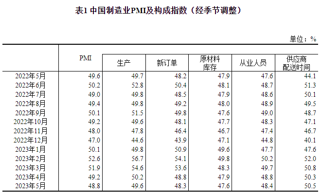 5月份制造业采购经理指数为48.8%