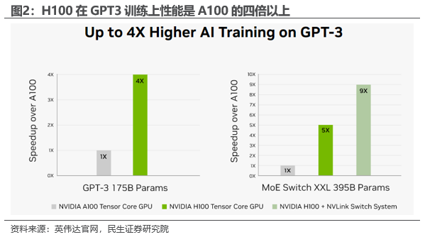 公司AI芯片等硬件基础设施持续升级。英伟达推出了NVIDIA Hopper? GPU架构、NVIDIA? H100 Tensor Core GPU以及第四代AI基础架构系统NVIDIA DGX? H100,这些新产品都在性能上实现了显著的提升。此外,公司还推出了基于Arm?的NVIDIA Grace? CPU Superchip,这是一种新的高速低延迟的芯片到芯片互联技术,两个CPU芯片能够直接进行高速数据交换,这比传统的互联方法更高效,可以大大减少数据在处理器之间传输的延迟,提供更高的性能,更低的能耗,以及更高效的处理大规模工作负载的能力。