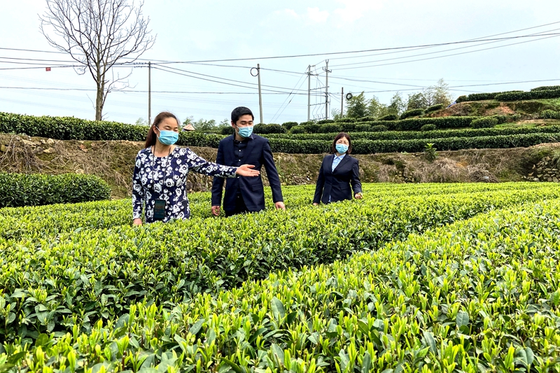 中国(国际)茶商大会召开在即,为全力抗击疫情对茶叶市场的冲击,助力丽水茶叶走向国际市场,邮储银行浙江丽水市分行在全辖创新推出特色产品“茶商贷”。截至目前,该行已发放“茶商贷”3004笔、金额3.43亿元,为茶商春季生产提供了有效的资金保障。图为该行员工深入松阳“茶商贷”客户茶园,了解茶叶采摘销售情况。 本报记者 刘志良 通讯员 刘洪升 摄