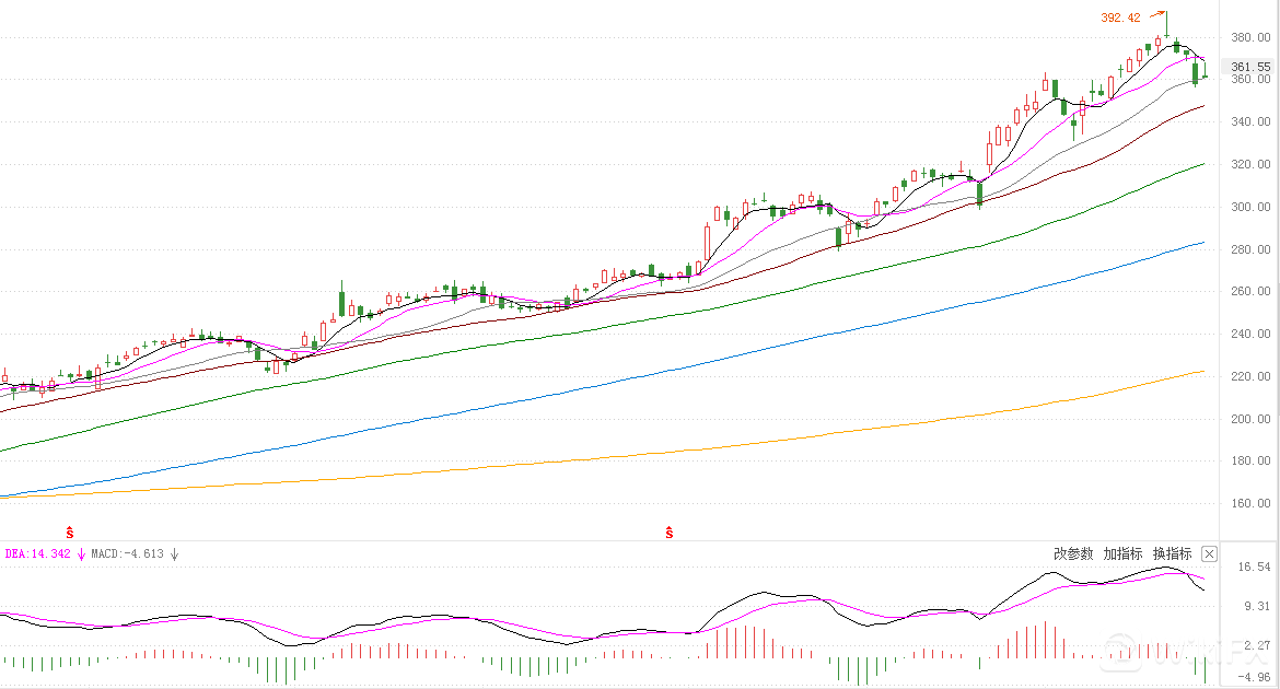 股价方面,目前在1353.49美元的历史新高附近, PE在15.94倍左右,看起来并不是非常贵。按照DCF法来估值,假设其未来5年的增长率为7%,永续增长率3%,其合理估值大概在519亿美元附近,这表明目前的股价仍然低于合理估值,因此,预计未来其股价还有上升空间。