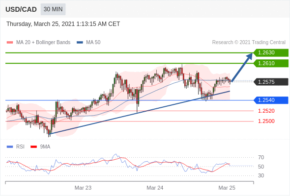 在 1.2540 之上,看涨,目标价位为 1.2610 ,然后为 1.2630 。