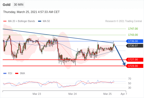 在 1739.00 之下,看跌,目标价位为 1727.00 ,然后为 1723.00 。