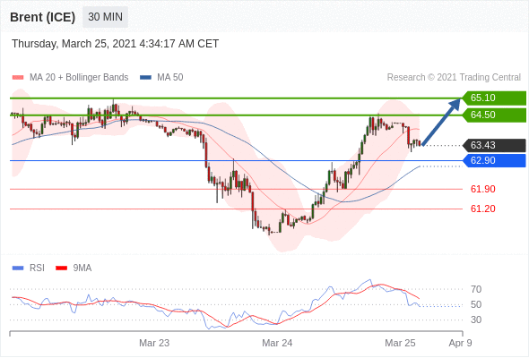 在 62.90 之上,看涨,目标价位为 64.50 ,然后为 65.10 。