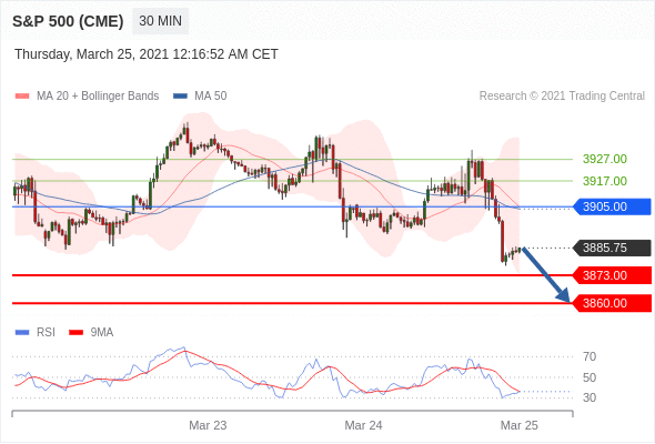 在 3905.00 之下,看跌,目标价位为 3873.00 ,然后为 3860.00 。