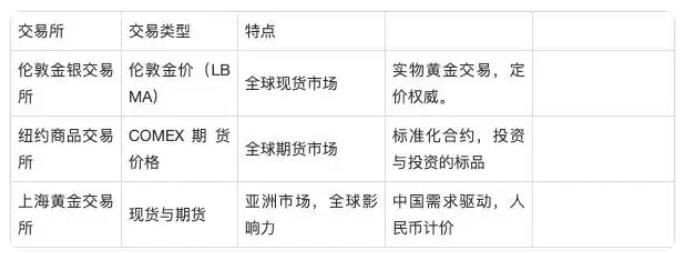 除了三大交易所,以下市场也在全球黄金交易中扮演重要角色: