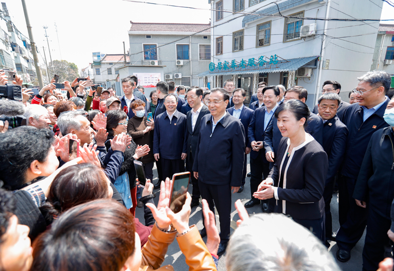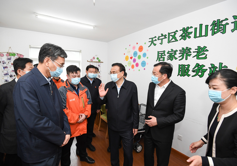 3月25日上午,李克强来到江苏常州富强新村社区,先后考察快递代收点、养老服务站、便民食堂等服务场所。