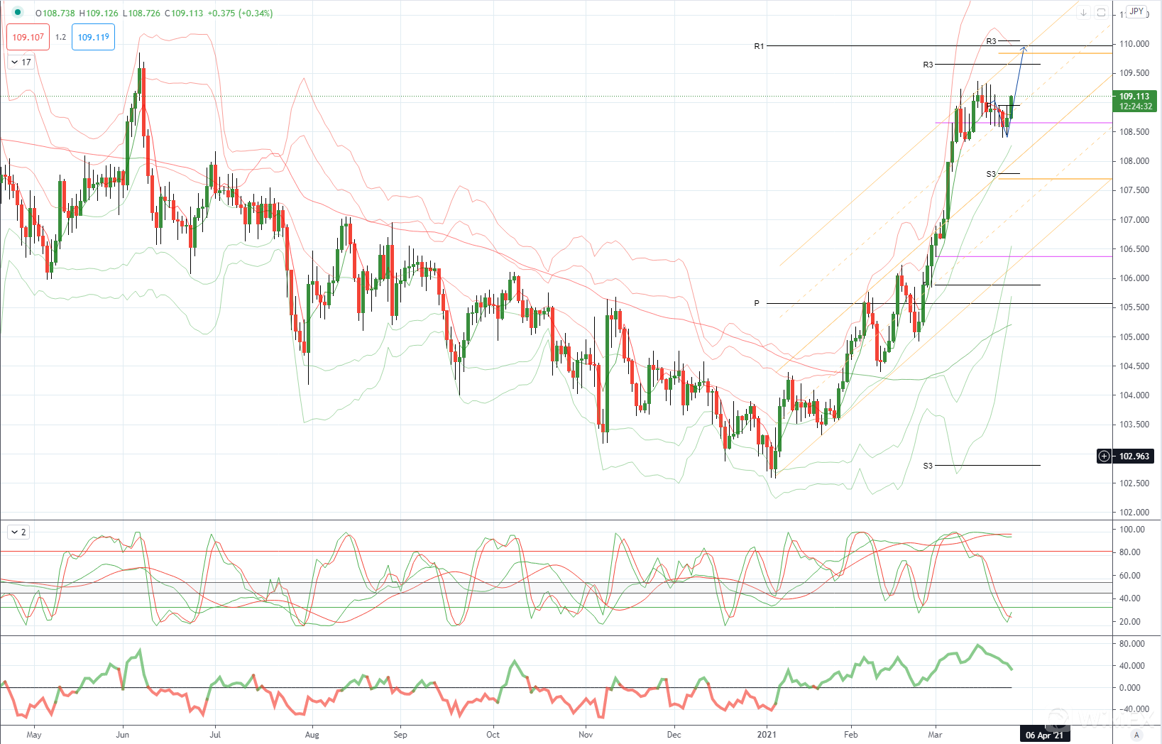 USDJPY从技术和交易角度看,随着108.30继续吸引需求,多头将在年度R1枢轴110之前测试关键的109.85。