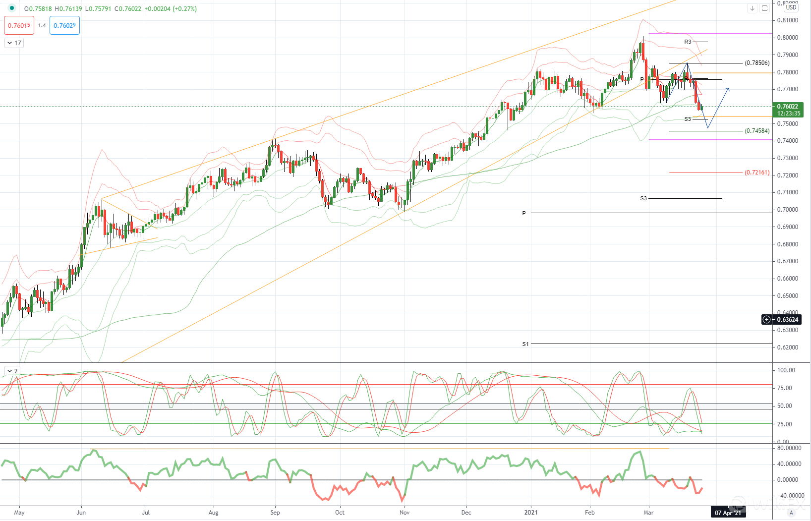 AUDUSD 日内偏差:在.7560上方看涨,在.8200上方看涨