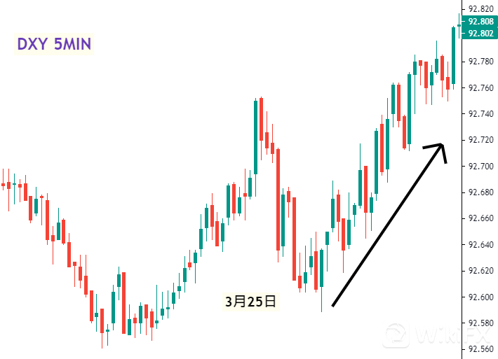美国经济数据及劳动市场皆传佳音,助美元指数震荡走高,如下图。