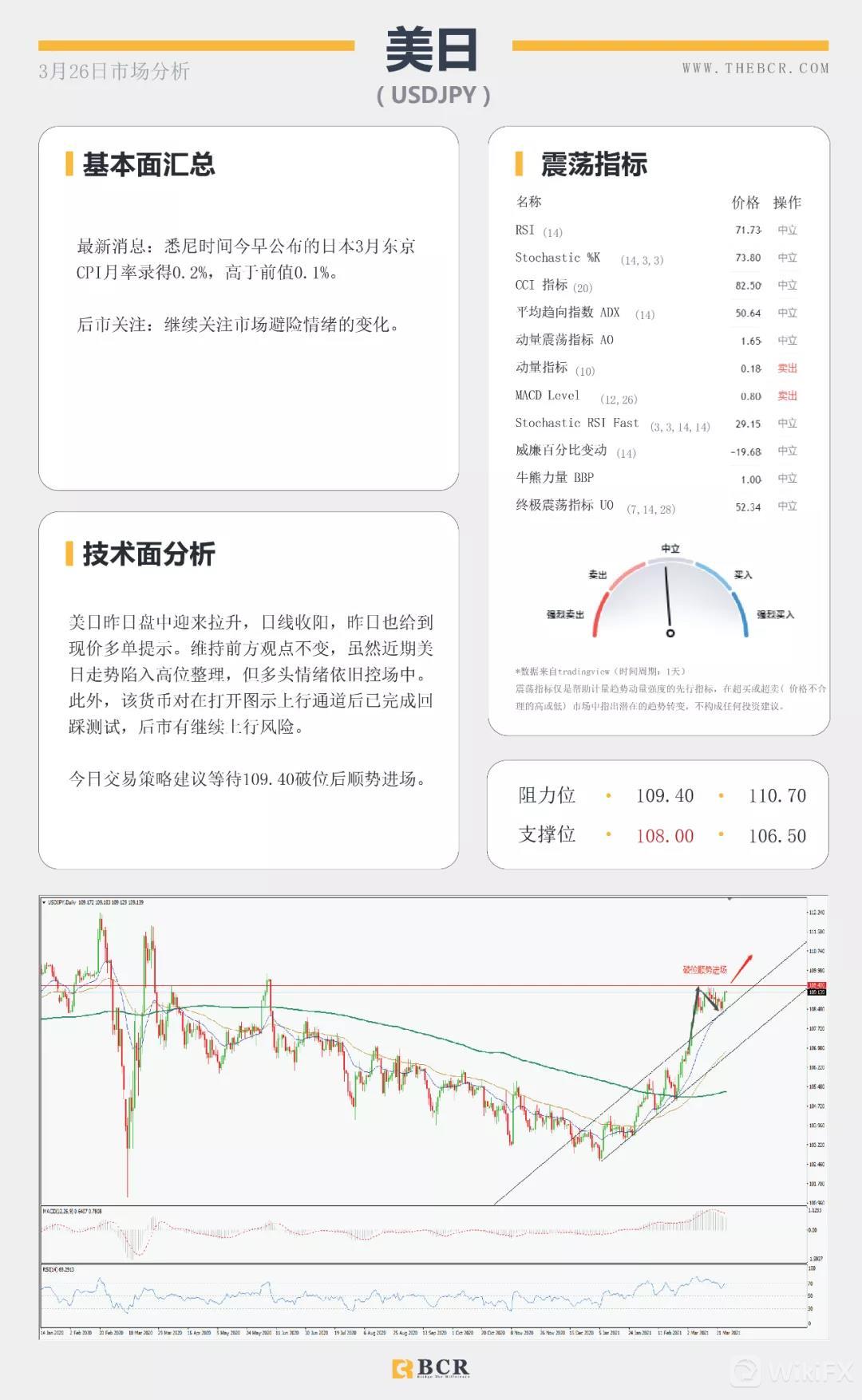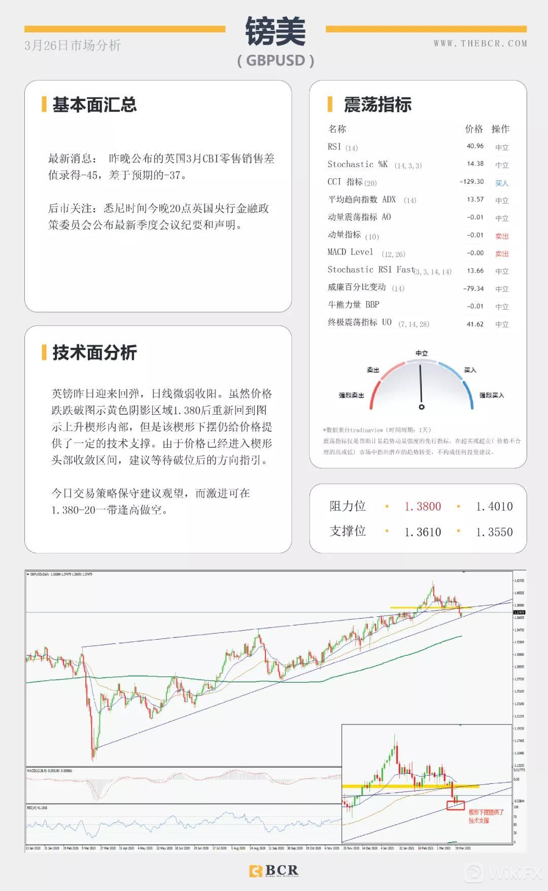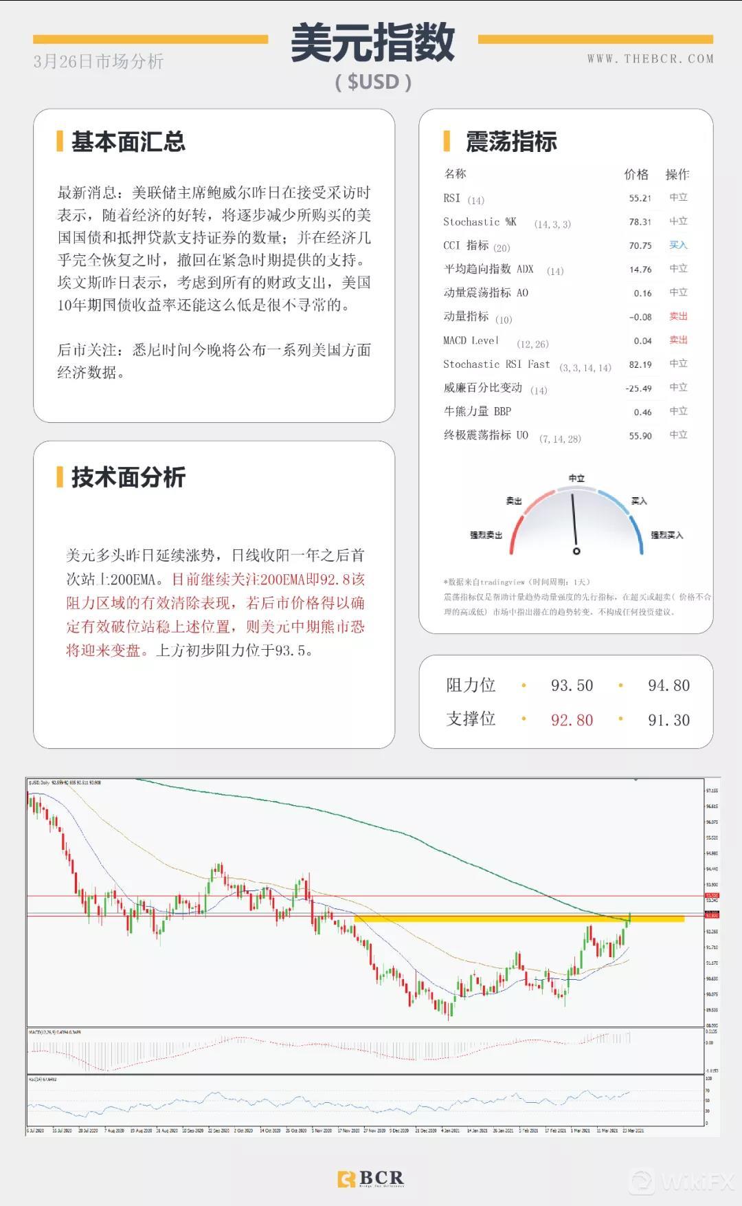 国民汇:【BCR今日市场分析2021.3.26】美元多头重新拿下200均线 欧洲面临第三轮疫情冲击