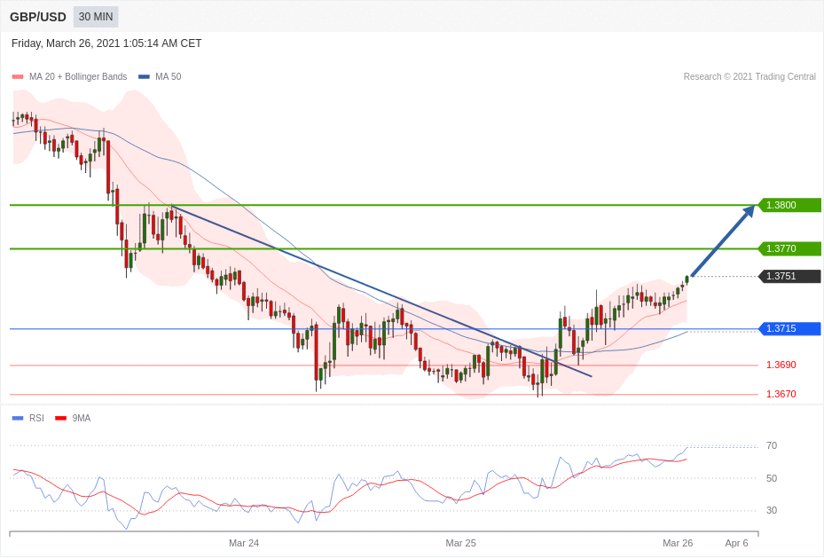 交易策略:在1.3715 之上,看涨,目标价位为 1.3770 ,然后为1.3800。