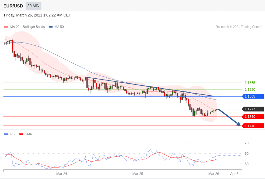 交易策略:在1.1805 之下,看跌,目标价位为 1.1760 ,然后为1.1740。