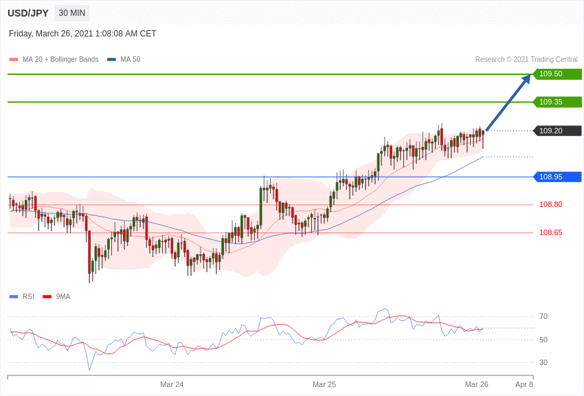 交易策略:在108.95 之上,看涨,目标价位为 109.35 ,然后为109.50。