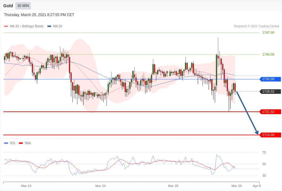 交易策略:在1732.00 之下,看跌,目标价位为 1721.50 ,然后为 1714.00。