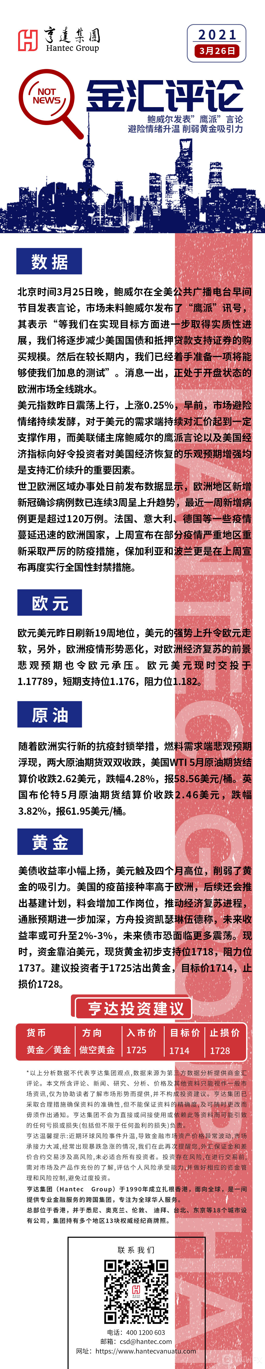亨达国际金融:亨达金汇评论2021年3月26日