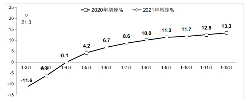 2020年-2021年1-2月软件业务收入增长情况 图片来源:工信部网站