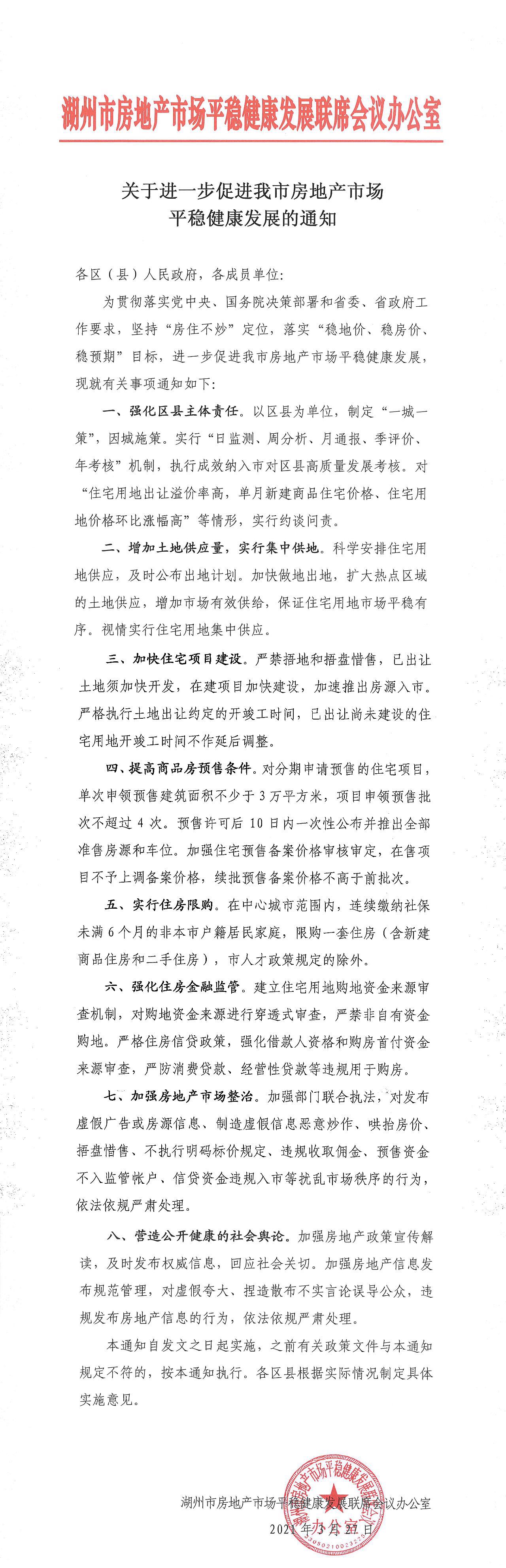 据湖州市人民政府网站27日消息,浙江省湖州市发布《关于进一步促进我市房地产市场平稳健康发展的通知》(下称《通知》)。《通知》明确,在中心城市范围内,连续缴纳社保未满6个月的非本市户籍居民家庭,限购一套住房(含新建商品住房和二手住房);建立住宅用地购地资金来源审查机制,对购地资金来源进行穿透式审查,严禁非自有资金购地。