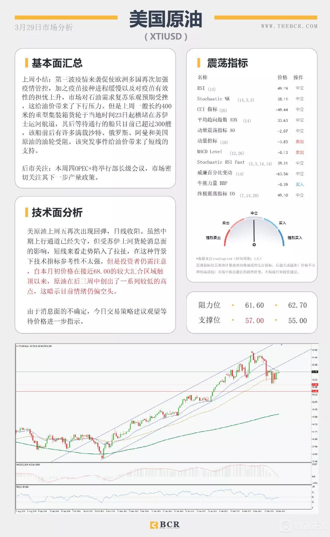 国民汇:【BCR今日市场分析2021.3.29】苏伊士运河扰乱原油走势 美元坚挺金价短线迷失