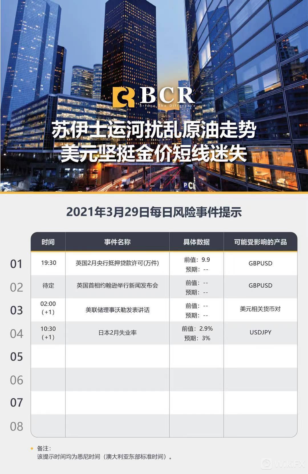 差价合约交易需承担一定风险而且不一定适合所有投资者。在您决定与BCR百汇合作进行差价合约交易之前,请慎重考虑您的投资目标,财务状况,投资需求和经验水平。我们建议您寻求独立金融专业意见,而且您确保在交易之前已充分了解该投资可能涉及的风险。BCR Co Pty Ltd (BCR Global) 接受澳大利亚证券投资委员会(ASIC)监管,监管牌照为328 794,同时也接受英属维京群岛金融服务委员会(BVIFSC)监管,监管牌照号为 SIBA/L/19/1122
