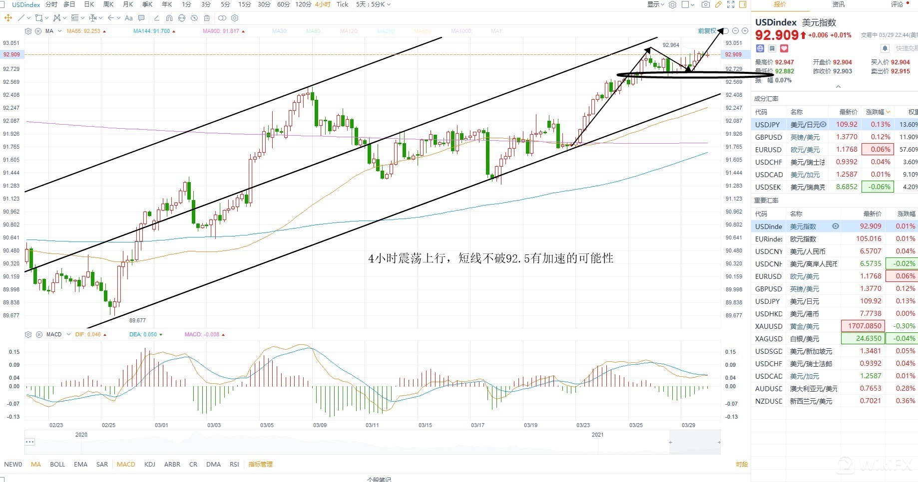 隔夜黄金破位下跌,虽然美元没有大幅上涨,但美债上涨直接打压黄金,因此在非农之前连续下行破位的概率不一定很大,还是存在反复的可能性,关注近期基本面数据的变化,美元方面加速上涨则有冲顶的可能性,目前依然是上涨结构之中,因此不考虑左侧沽空,等待压力位置附近的测试,技术层面4小时92.5支撑不破,存在加速向上的可能性短线重要压力位置94