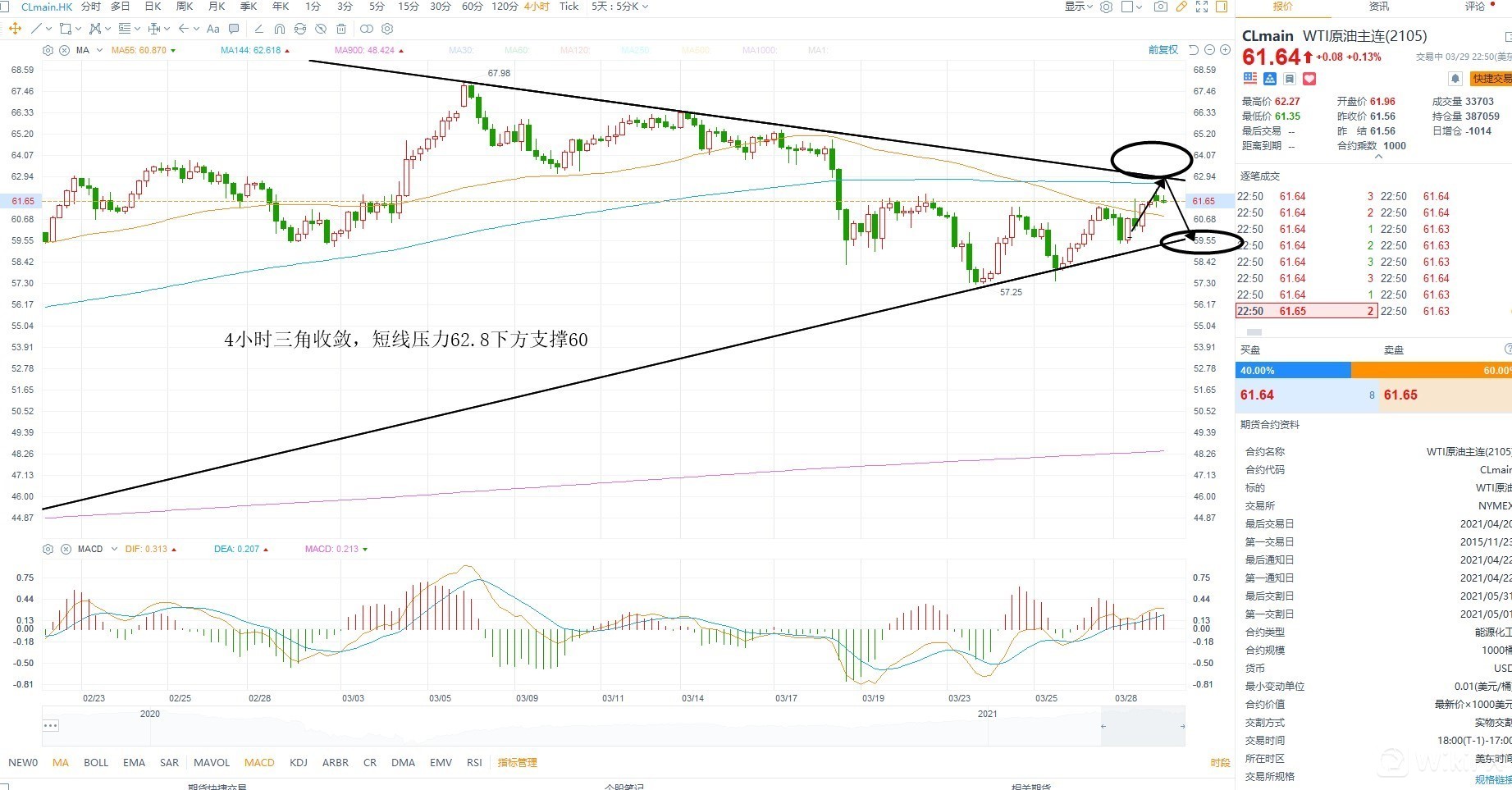 美原油回踩均线支撑之后再次反弹向上,短线而言等待供给端的变化影响,这里的反弹大概率是箱体为主,若直接上破新高则加速上涨,但基本面不支持,所以这里的上涨还是以反弹对待,短线重要支撑60不破维持反弹不变,跌破则重回箱体,上方压力62.8,若4小时结构被突破,那么很有可能再次走出单边行情,日内不追涨,等压力位置测试