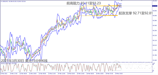 周二(30日)清晨美国总统拜登呼吁各州恢复戴口罩的命令,以及将于周三宣布以交通为重点的刺激计划,美元早上在92.90附近震荡。欧美和镑美也处于震荡走势。受到第三波疫情影响,如果今天欧美公布经济数据皆不佳,可能造成美元相关外汇出现震荡。特别留意各国宣布封锁措施是否再度紧缩,一旦宣布紧缩政策可能造成当下货币出现急跌走势。短线留意美元挑战93关口是否出现卖压,可能造成震荡走势。