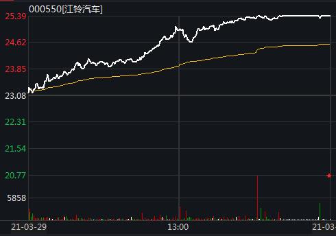 值得注意的是,3月29日,江铃汽车股价高开高走,尾盘涨停封板。以公司3月29日收盘价25.39元/股计算,股息率为13.69%,分红比率高达544.86%。