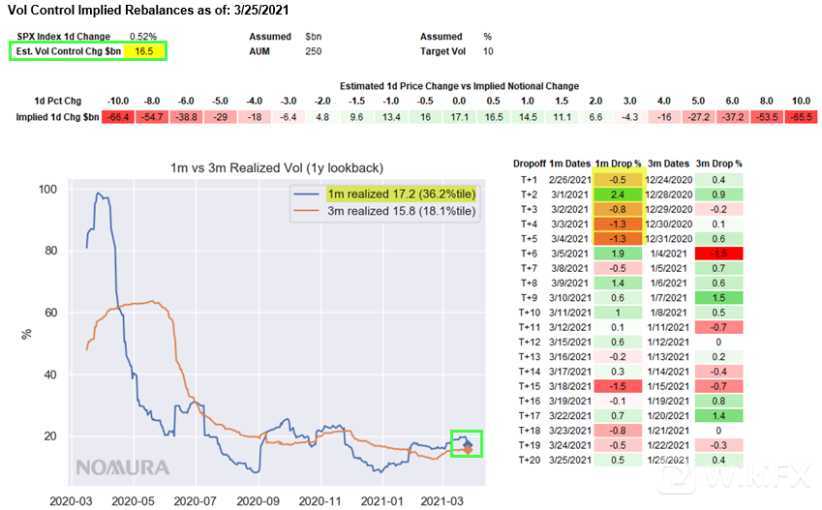 野村证券(Nomura)的Charlie McElligott在最新报告也赞同这个观点,基于观察,分析师表示,正是因为波动率控制和量化基金买入,在上周五欧洲股市收盘后,美股逆转了跌势。