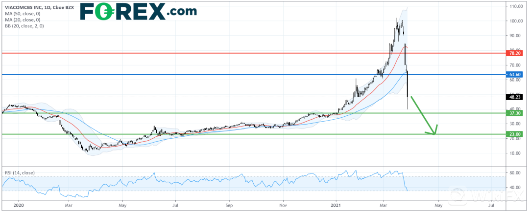 彭博报导,经高盛周五大宗交易卖股后,再有背后卖家周日以每股46.00美元至47.00美元要约出售ViacomCBS (VIAC) 公司4,500万股份。在事件尚未厘清之前,投资者应对这类股份保持警惕。