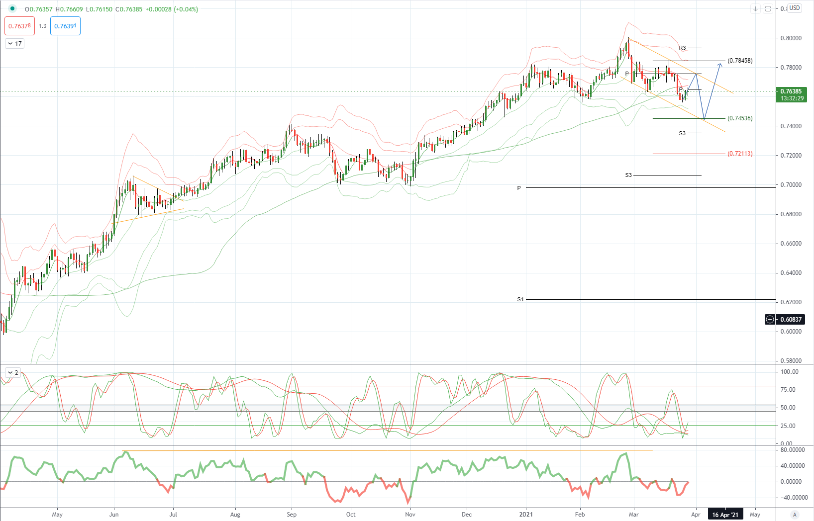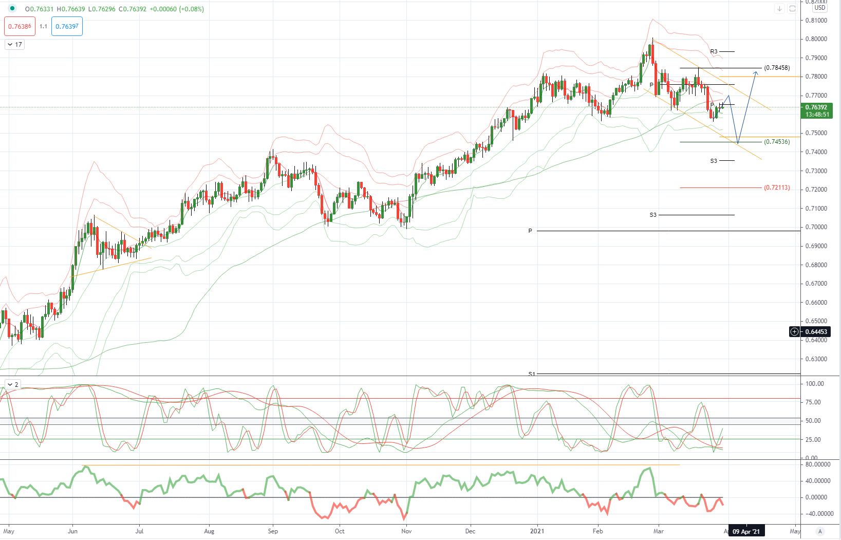 AUDUSD 日内偏差:在.7560上方看涨,目标在.8200上方