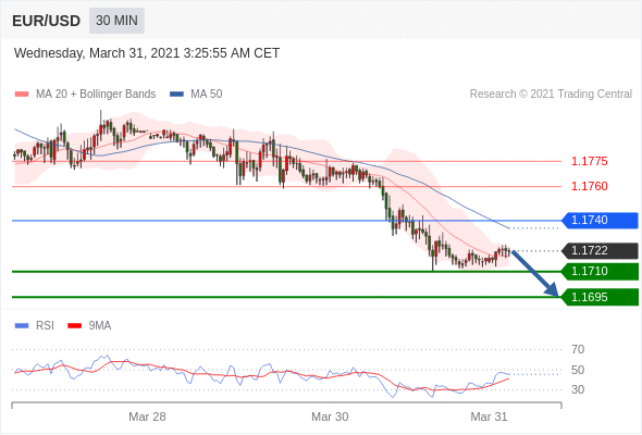 交易策略:在1.1740之下,看跌,目标价位为1.1710,然后为1.1695。
