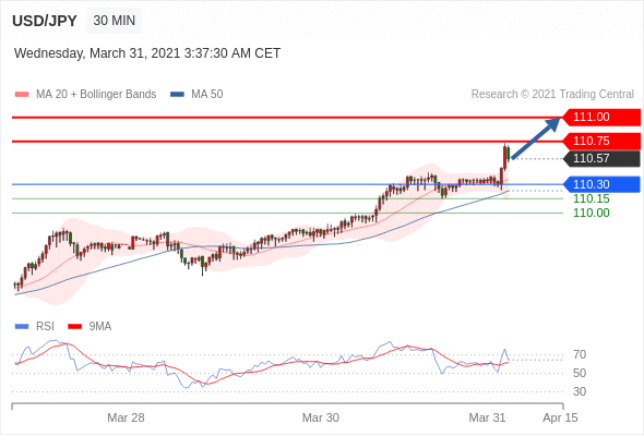 交易策略:在110.30之上,看涨,目标价位为110.75,然后为111.00。