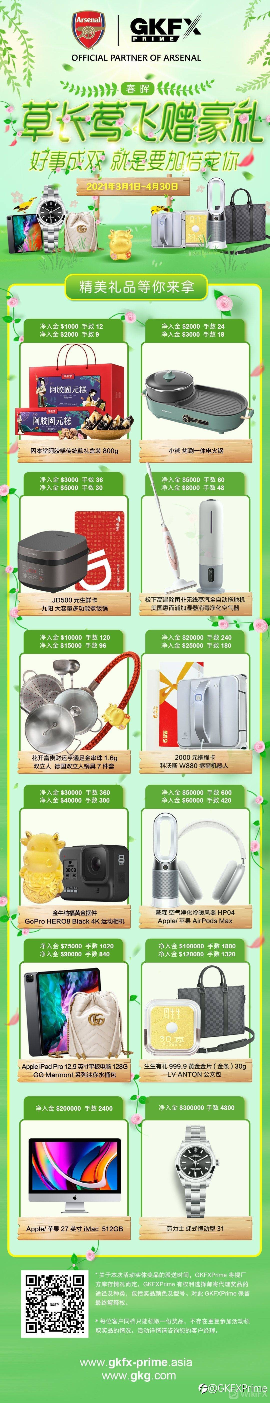 GKFXPrime同期市场营销活动,每位客户只能参加一项,只能领取一份奖品,不存在重复参加活动领取奖品的情况。