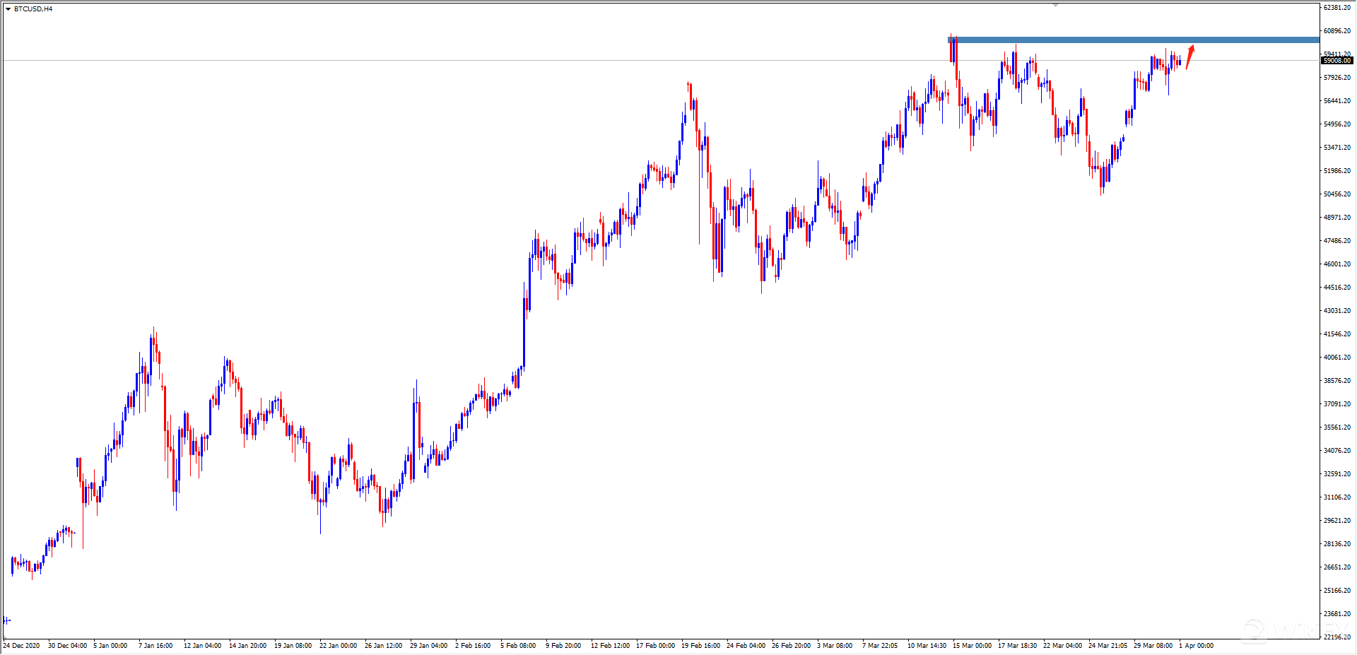 【技术点评】:H4周期,比特币多头持续,周内大概率继续上行测试前高。
